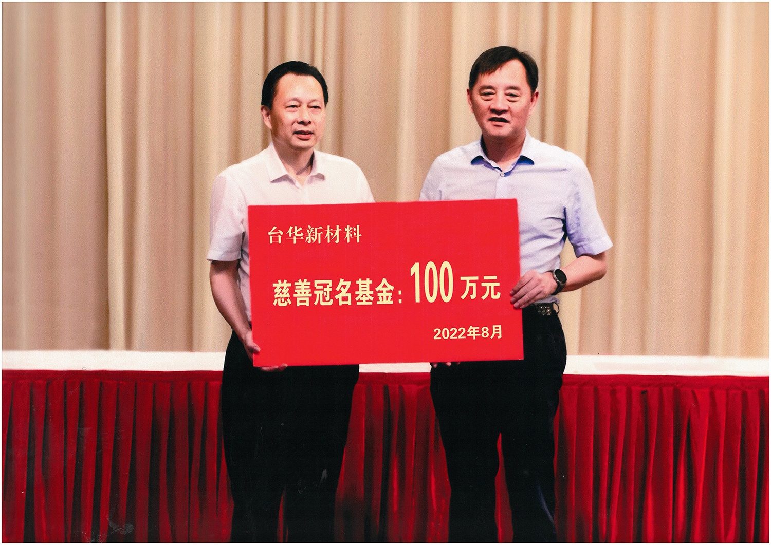 2022年8月,慈善冠名基金100萬元