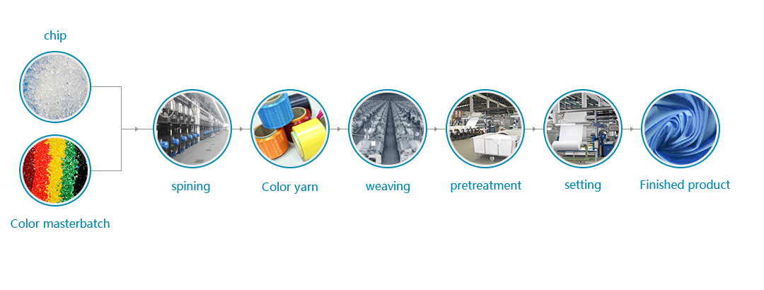 Raw liquid coloring fiber product — Refers to colored fibers obtained by spinning in a spinning solution or melt, also known as dye-free fibers or pre-spun dyed fibers. — The coloring of the raw liquid can save the printing and dyeing process, avoiding the production of a large amount of printing and dyeing wastewater, and has outstanding environmentally friendly characteristics. |
