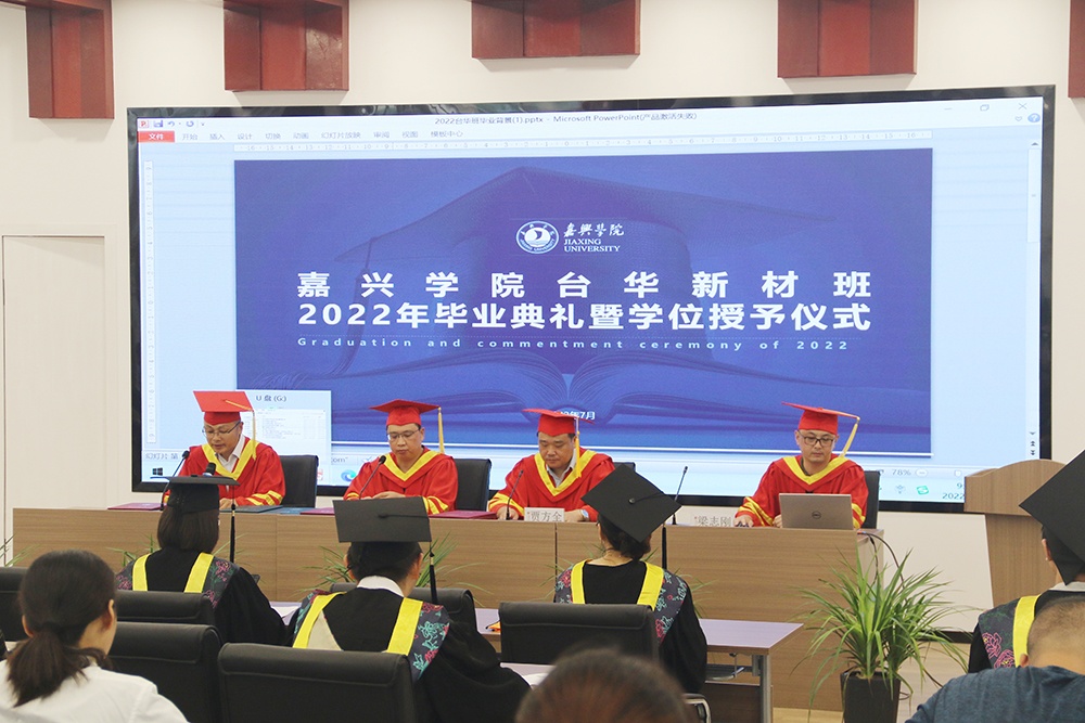 7月16日,嘉興學院臺華新材班2022年畢業(yè)典禮暨學位授予儀式在嘉興學院繼續(xù)教育學院順利舉行。嘉興學院繼續(xù)教育學院副院長陳紅新、臺華新材人力資源總監(jiān)賈方全出席本次儀式,31名畢業(yè)生代表參加。