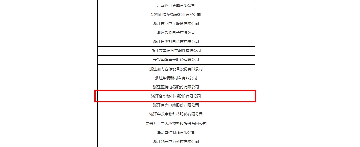 2月9日,浙江省經(jīng)濟(jì)和信息化廳發(fā)布的《關(guān)于2022年度浙江省隱形冠軍企業(yè)名單的公示》中,浙江臺(tái)華新材料股份有限公司上榜。