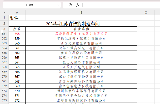 8月1日,江蘇省工業(yè)和信息化廳發(fā)布了《關(guān)于2024年江蘇省智能制造車間等名單的公示》,嘉華特種尼龍(江蘇)有限公司成功入選該名單。