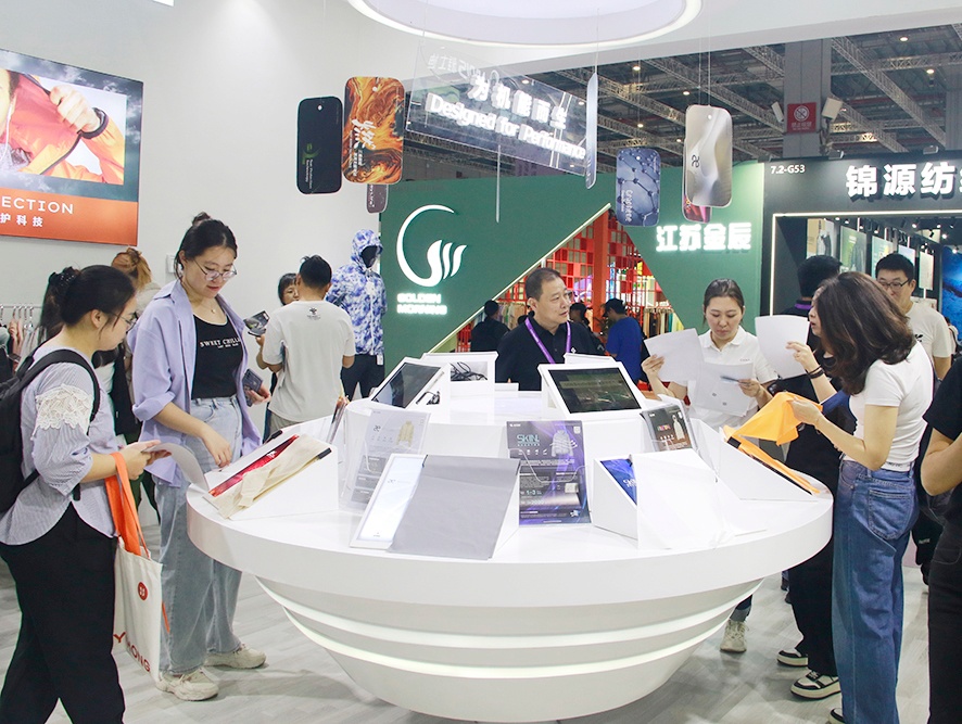 臺華新材本次主推石墨烯、燃科技、SKIN.Breathe面料、FREEMOVE、AEROGEL、鑭明稀土、EasyLife皮膚式防水透濕、Air-Function面料,詮釋秋冬8款趨勢面料,主打輕量、環(huán)保、保溫、無膽防絨等功能性。