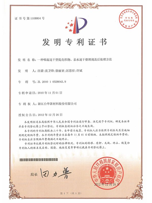 發(fā)明專利證書